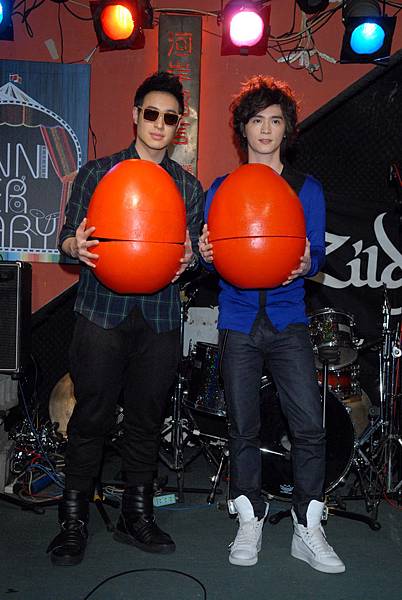 音樂才子紀佳松4/1發行《魚人》今日(4/30)滿月,選在公館小河岸開唱,同門師兄潘瑋柏潘帥到場力挺,帶來紅蛋和金鎖片祝《魚人》銷售長紅、續航力堅強,堪稱”松柏之情”的情誼一定要延續,所以兩人還相約未來要結為親家;紀佳松感念潘帥一路力挺到底,現場撲抱潘帥大腿感激不已。